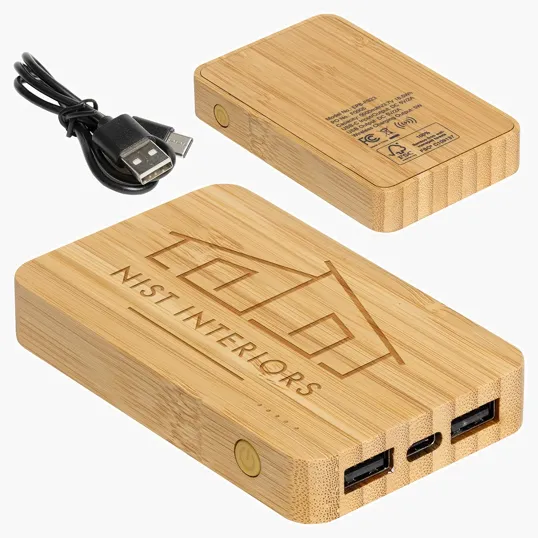 FSC® Bamboo 5000mAh Dual Port Power Bank with Wireless Charger